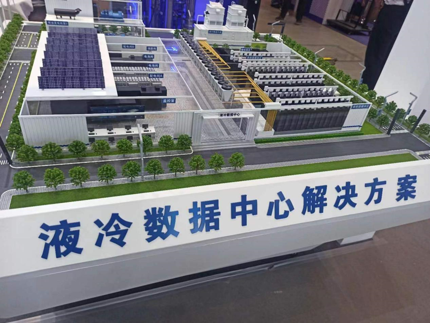 另一家园区企业浪潮信息同样携一系列产品亮相本次成果展。其中,一个精致的数据中心模型吸引了众人的目光。这就是浪潮信息带来的液冷数据中心解决方案。