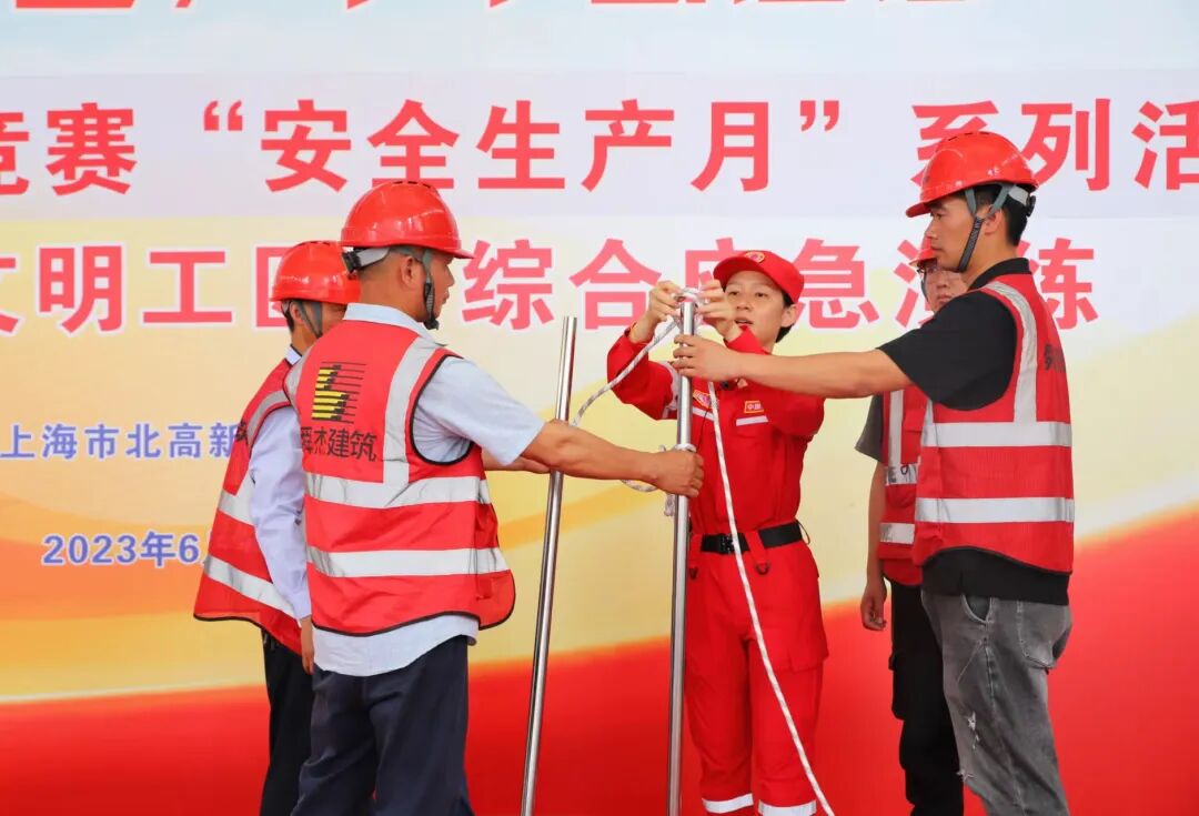 为了进一步提升工程建设领域安全意识和避险逃生能力,6月28日,以“人人讲安全,个个会应急”为主题的德晋贵宾厅高新园区“立功竞赛安全生产月”系列活动在位于汶水路57号的德晋贵宾厅22-02地块项目工地举行。静安区应急管理局局长谢志彬,静安区建设和管理委员会重大项目协调推进中心副主任汤咏梅,德晋贵宾厅高新集团党委副书记、纪委书记、园区总工会主席张颖,德晋贵宾厅高新集团副总裁张俊松,静安区立功竞赛办公室陈磊,浙江舜杰集团副总经理洪宇出席活动。