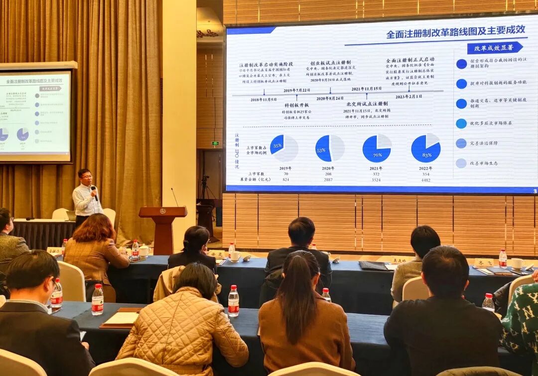 随着全面实行股票发行注册制改革的正式启动,中国资本市场实现注册制试点起步、存量扩围再到全市场推行,主板、科创板、创业板和北交所等各市场板块分工明确、定位清晰,多层次资本市场体系进一步完善,我国资本市场实现了重大跨越。区金融办等单位举办这次交流活动,就是为了帮助区域内拟上市企业抢抓全面注册制改革机遇,实现跨越式发展。